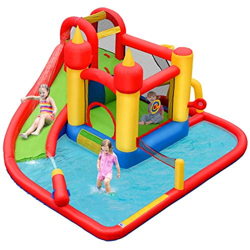 Bountech Inflatable Bounce House Mighty 7 In 1 Water Slide Park W Jumping Area Climb Wall Splash Pool Water Cannon Including Carry Bag Ocean Balls Repair Kit Stake Hose Without Blower Walmart Canada